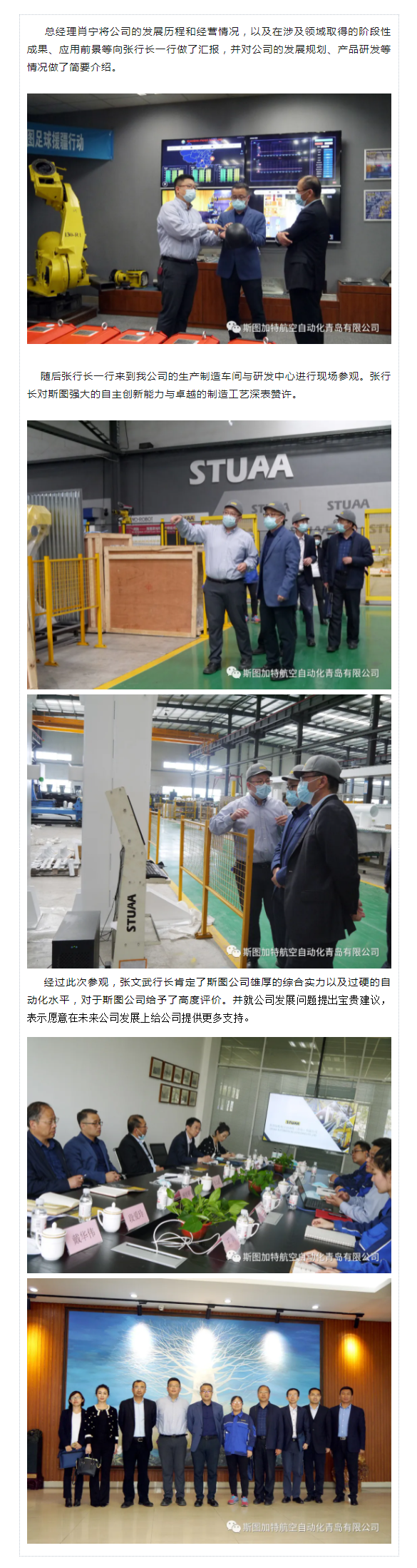 中國(guó)人民銀行青島中心支行張文武行長(zhǎng)一行蒞臨斯圖考察調(diào)研