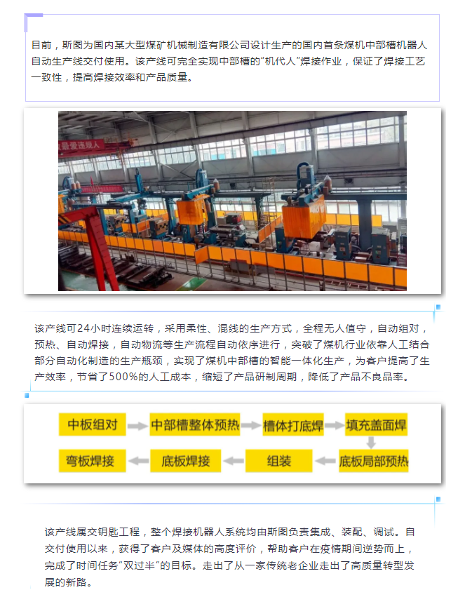 斯圖|國內(nèi)首條煤機(jī)中部槽機(jī)器人自動生產(chǎn)線成功交付啦