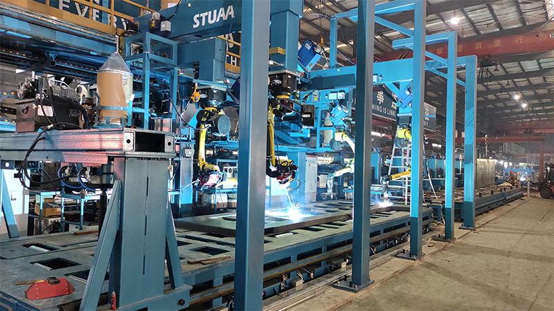 適應(yīng)多品種小批量生產(chǎn),適應(yīng)U型廂板、矩形廂板和底板等工件,整線自動物流自動焊接,對接MES/ERP